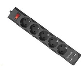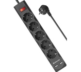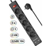 Максимальная рассеиваемая энергия: 220 Дж, Защищаемые цепи: фаза-ноль, Защита от перегрузки и короткого замыкания: автоматический несгораемый предохранитель, встроенный в выключатель, Кол-во розеток: 5 шт.,Розетки с заземлением: 5 шт., Номинальное напряжение/частота: 230 В / 50 Гц, Максимальная суммарная мощность нагрузки: 2200 Вт, Максимальный ток нагрузки: 10 А, Длина: 3.0 м, Напряжение на USB-портах: 5 В, Кол-во USB-портов для зарядки: 2 шт., Максимальный ток USB-порта: 2.1 А, Токовая защита USB-портов, USB-порт для зарядки устройств, Крепление на стену.