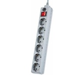 Cетевой фильтр, количество розеток - 6 (евростандарт с заземлением), номинальный ток нагрузки - 10А, номинальное входное напряжение - 220В, корпус из ударопрочного негорючего материала, длина кабеля - 5,0 м.
