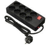 Омедненный (CCA) основной силовой кабель и все проводники. Длина шнура - 5м. Количество выходных розеток - 8. Входная вилка, тип - EURO. Выходные розетки с заземлением типа EURO - 8. Номинальное напряжение питающей сети - 220В. Максимальная рассеиваемая энергия - 107 Дж. Максимальный импульсный ток помехи - 4500A. Частота сети - 50 Гц. Максимальная нагрузка - 2200Вт. Максимальный ток нагрузки - 10A. Подавление высокочастотных помех. Защита от короткого замыкания - биметаллический размыкатель. Защита от перегрева. Автоматический (термобиметаллический) предохранитель. Подавление импульсных помех. Цвет - черный.