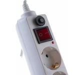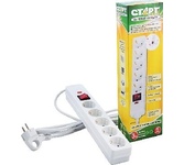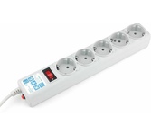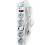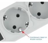 защита от импульсн помех, короткого замык и перегрузок, 220В, макс ток нагрузки 10А, макс поглощ энергия 90Дж, кабель ПВС-ВП 3х0.75мм2, Выключ – со светодиод индикац и коммутац двух проводников (фазы и нуля), 5 заземл евро-розеток, корпус – негорючий плас
