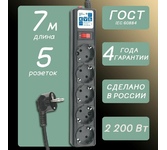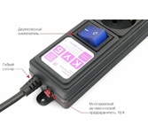 Основные характеристики - Тип устройства: сетевой фильтр - Применение: для дома и дачи, для компьютера Электропитание - Рабочая частота: 50 Гц - Максимальное входное напряжение: 220 B - Номинальная мощность: 2200 Вт - Максимальный ток нагрузки на выходе: 10 А - Максимальная поглощаемая энергия: 107 Дж - Количество гнезд: 5 Безопасность - Защита от короткого замыкания: есть - Защита от перегрузки: есть - Защита от повышенного напряжения: нет - Фильтр импульсных помех: да Функции - Общий выключатель розеток