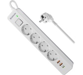 [Сетевые фильтры] Defender Удлинитель с сетевым фильтром DFS 143 3 м,белый,4розетки,USB+TypeC [99434]