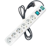 Макс. подавляемая энергия высоковольтных импульсов, Дж ≤ 150 Номинальное напряжение, В ~ 250 Рабочая частота, Гц 50 Максимально допустимая нагрузка, Вт 3680 MAX Максимальный ток нагрузки, А 16,0 Общий выключатель розеток есть Индивидуальные выключатели розеток нет Входная вилка СЕЕ 7/7 Выходные розетки 8 × СЕЕ 7/4 Защита модемной линии нет Ток срабатывания термопредохранителя, А >16 Температура окружающей среды, °С от +10 до +70 Влажность воздуха не более 65 % Автоматический предохранитель для отключения при перегрузках и КЗ Варисторная защита от высоковольтных импульсных помех Защитные шторки на розетке от посторонних предметов Восемь евро розеток CEE7/4 (EU) с надежной фиксацией вилок любых типов Возможность настенного крепления в любом положении Максимально допустимая нагрузка 3680 Вт