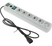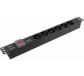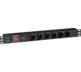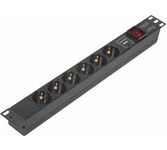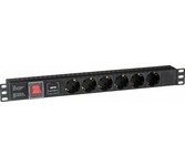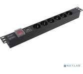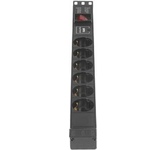 Тип: Блок розеток; Цвет: черный; Количество розеток: 6 розеток; Шторки на розетках: есть; Отдельный выключатель для каждой розетки: нет; Максимальный ток нагрузки: 10 А; Функции защиты подключаемых устройств: н/д; Индикация: индикация включения; ЖК-дисплей: нет; Кабелеукладчик: нет; Прочие особенности и свойства: Кабель для подключения к электросети - Приобретается отдельно, Высота 1U, Установка в стойку 19", Выключатель с подсветкой и крышкой, C заземлением, Вход питания IEC-320-C14 (компьютерная