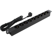 [Сетевой фильтр] Exegate EX280851RUS Блок розеток ExeGate ServerPro PDU-19H905 Al-9S-EU3, 19",1U,алюм, 9Schuko, евровилка, 3м