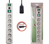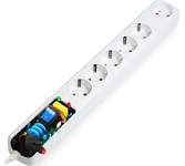 Омедненный (CCA) основной силовой кабель и все проводники. Длина шнура - 5м. Количество выходных розеток - 5. Входная вилка, тип - EURO. Выходные розетки с заземлением типа EURO - 5. Номинальное напряжение питающей сети - 220В. Максимальная рассеиваемая энергия - 107Дж. Максимальный импульсный ток помехи - 4500A. Частота сети - 50 Гц. Максимальная нагрузка - 2200Вт. Максимальный ток нагрузки - 10A. Подавление высокочастотных помех. Защита от короткого замыкания - биметаллический размыкатель. Защита от перегрева. Автоматический (термобиметаллический) предохранитель. Подавление импульсных помех. Индивидуальные выключатели розеток . Цвет - белый.