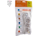 Колодка на 3 розетки. Длина провода 3 м. Провод ПВС с сечением 2х0,75 мм2. Макс нагрузка 2200 Вт Сила тока 10 А Материал - негорючий, ударопрочный РР-пластик. Корпус неразборный. Цвет-белый