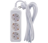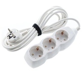 Номинальное напряжение, частота: 230В, 50Гц / максимальный ток нагрузки: 10А / максимально допустимая суммарная мощность нагрузки: 2200Вт (2,2 кВт) / тип провода (кабеля): ПВС / сечение кабеля: 2 х 0,75 мм? / длина провода: 4,5 м / количество штепсельных гнёзд: 3 / защитные шторки: нет / заземляющий контакт: нет / материал деталей контактных групп: латунь / материал колодки: пластик / степень защиты IP20 / крепление «Quick Fix» /