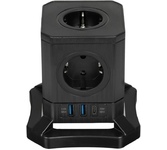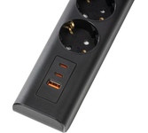 Сетевой фильтр с 2xUSB+1xType-C портами; Розетки 5 шт.; Длина кабеля 3 метра; Цвет черный; Максимальная мощность 4000W (16A); 2xUSB, 1xType-C (Максимальная суммарная сила тока: 3 А), поддержка QC/PD; Защитные шторки, Защита от перегрузки и короткого замыкания; Стильный лаконичный дизайн; Огнеупорный пластик; Питание AC 220-250V 50Hz.
