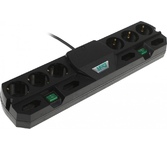 Входная вилка, тип: EURO. Длина шнура: 2. Максимальная нагрузка: 2200. Номинальная мощность: 2200. Номинальный ток: 10. Номинальное напряжение питающей сети: 250. Частота сети: 60. Подавление импульсных помех: да. Максимальная рассеиваемая энергия: 1500. Защита от короткого замыкания: плавкий предохранитель. Защита от перегрева: термопредохранитель. Количество выходных розеток: 6. Выходные розетки без заземления типа EURO: 1. Габариты упаковки (ед) ДхШхВ: 0.455x0.13x0.068. Вес упаковки (ед): 0.71. Гарантия: 60 мес.. Цвет: черный. Количество выходных розеток: 6. Максимальная нагрузка: 2200 Вт. Входная вилка: EURO. Номинальная мощность: 2200 ВA. Длина шнура: 2 м