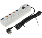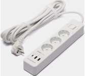 Удлинитель с 2xUSB+1xType-C (Power Delivery 20Вт) портами; Розетки 3шт; Длина кабеля 5.0 метров Максимальная мощность 4000W (16A); 2xUSB, 1xType-C (Максимальная суммарная сила тока: 4.8 А); Выключатель с защитой от перегрузок; Защитные шторки, Индикатор заземления, Индикатор работы; Индикатор защиты от перепада напряжения; Отверстия для крепления на стену; Стильный лаконичный дизайн; Высококачественный пластик; Питание AC 220-250V 50Hz. Вес: 600 гр.; Габариты 270х55х41 мм.