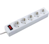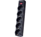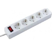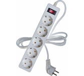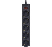 Cетевой фильтр, количество розеток - 5 (евростандарт с заземлением), номинальный ток нагрузки - 10А, номинальное входное напряжение - 220В, корпус из ударопрочного негорючего материала, длина кабеля - 3,0 м.