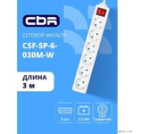 [сбр сетевые фильтры] CBR Сетевой фильтр CSF SP-6-030M-W, 10A, 6 евророзеток, защита от детей, 3x0.75мм2, медь, 3 м, белый
