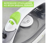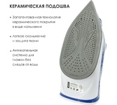 Мощность 2400Вт, резервуар для воды 300мл, керамическая подошва (240х123 мм), сухое глажение / глажение с пароувлажнением, регулировка подачи пара, вертикальный пар, самоочистка, защита от протекания и накипи (anti-drip, anti-calc), световой индикатор работы, кабель питания 1,8 м.