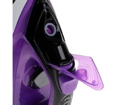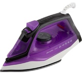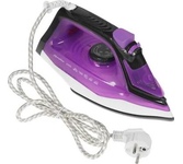 Мощность 1800Вт, резервуар для воды 220мл, тефлоновая подошва (182х100 мм), сухое глажение / глажение с пароувлажнением, регулировка подачи пара, мощный паровой удар, вертикальный пар, самоочистка, световой индикатор работы, кабель питания 1.8 м. Цвет: белый/пурпурный.