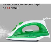 1000Вт, резервуар для воды 80мл, подошвас тефлоновым покрытием (170*89 мм), регулируемый термостат, кнопка включения/выключения пара, паровой удар, складная ручка, мерный стакан, 1.5 м шнур питания