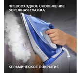 Мощность 2400 вт Материал подошвы Ceramic UltraCare – уникальное керамическое покрытие для максимальной защиты ткани Паровой удар 140 г/мин Вертикальное отпаривание. Система самоочистки. Функция разбрызгивания. Противокапельная система. Защита от накипи. Объeм резервуара для воды 250 мл. Регулировка подачи пара. Длина сетевого шнура 1,8 м. Шаровое крепление шнура. Мерный стакан.