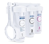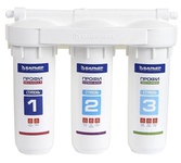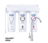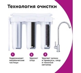 Фильтр под мойку. Для мягкой воды. Количество ступеней очистки три. Ресурс (заявленный производителем) 8000 л. Температура воды от 5 до 40 °C. Рабочее давление от 0,5 до 6,3 атм. Производительность 2,5 л/мин. Подводка гибкая.