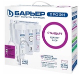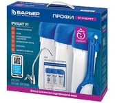 Водоочиститель бытовой, Фильтр для воды Барьер, Профи Стандарт Лайт, для холодной воды, система под мойку, для мягкой воды, с краном, 3 ступени. 1-я ступень - "Барьер Профи Механика 5 мкм". Предварительный фильтр. Очищает от механических загрязнений от 5-ти мкм: песка, взвесей, ржавчины, окалины и многое другое. 2-я ступень - "Барьер Профи Карбон-блок". Фильтроэлемент из прессованного активированного кокосового угля. Очистка от активного свободного хлора, хлорорганических соединений, фенола и других соединений органических и неорганических веществ. Дополнительная тонкая очистка от механических загрязнений. 3-я ступень - "Барьер Профи ПостКарбон". Финишная очистка. Ионообменное волокно очищает воду от железа, ионов тяжелых и токсичных металлов. Гранулированный активированный уголь, обработанный серебром, устраняет неприятные запахи, улучшает вкус воды. Вес в упаковке 3.94 кг Габариты упаковки 33 x 39 x 14 см
