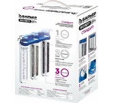 Тип: Водоочиститель. Ресурс: 10000. Картриджей в комплекте: 3. Скорость фильтрации: 2. Подключение к водопроводу: есть. Особенности: Кран для питьевой воды в комплектацию не входит.. Система очистки: трехступенчатая. Место установки: под раковину. Материал корпуса: пластик. Вес товара: 2.65. Тип очистки воды: сорбционная(проточная) система. Фильтры/картириджи в комплекте: Картридж Эксперт Механика, Картридж Эксперт Смягчение, Картридж Эксперт ПостКарбон. Габариты упаковки (ед) ДхШхВ: 0.25x0.25x0.331. Вес упаковки (ед): 1. Гарантия: 12 мес.. Рабочее давление: до 7атм.. Температура воды: 5-35°С. Цвет: белый. Размеры (ШxВxГ): 248x336x150 мм. Фильтрация загрязнений: растворенного железа, солей жесткости, тяжелых металлов, хлора. Тип очистки: сорбционная(проточная) система, трехступенчатая. Установка: под раковину. Скорость фильтрации: 2 л/мин. Особенности: подключение к водопроводу. Ресурс картриджа: 10000 л. Температура воды: 5-35°С. Рабочее давление: до 7атм