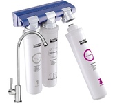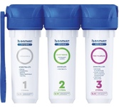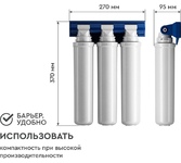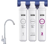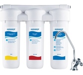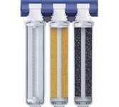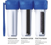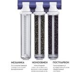 Трёхступенчатая очистка водопроводной воды с технологией byPass, позволяющей увеличить ресурс и избежать побочного эффекта гипперумягчения воды. мах.давление 7 атм, расход 2л/мин, ресурс - 10.000 л.