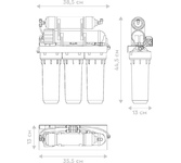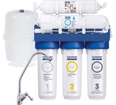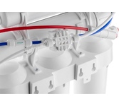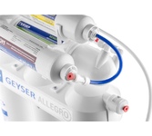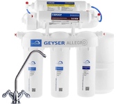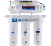Обратноосмотический фильтр «Гейзер Аллегро М» идеально очищает даже очень жесткую водопроводную воду. Для установки в напорной сети колбы имеют двойное уплотнение. Корпус выдерживает давление в 25 атмосфер и не менее 100 тысяч циклов гидроудара. Предусмотрен специальный клапан сброса воды в дренаж при сверхнормативном давлении в гидроаккумуляторе. Комплектация:2 предварительных фильтра РР 5-10SL, карбон-блок CBC 10-10SL, обратноосмотическая мембрана Geyser 1812-50 GPD, угольный постфильтр