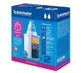 Общий объем 3 л. Сменный фильтрующий модуль В100-5 (6,7,8). Вместимость 2,8 л Объем полезной жидкости после очищения 1.4л. Консольная ручка с текстурой для удобного захвата. Удаляет из воды вредные примеси- тяжёлые металы, соли жёсткости, механические примеси, хлор, нефте продукты. Фильтрующая угольная кассета в комплекте. Ресурс кассеты 300 л. Материал - высококачественный пищевой пластик.