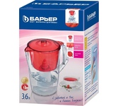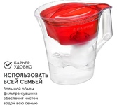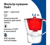Классический кувшни для большой семьи, объем кувшина 3,6 литра, объем воронки 1,5 литра, классическая круглая форма, мерная шкала на корпусе, срок службы не более 5 лет, цвет: красный, кассета в комплекте, ресурс кассеты 200 л.