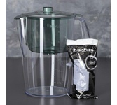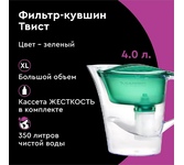 Эксклюзивный дизайн кушина разработан студией Артемия Лебедева, кувшин для большой семьи, объем кувшина 4 литра, объем воронки 1,4 литра, удобная цельнолитая ручка, широкий эргономичный выступ на крышке, срок службы не более 5 лет, цвет зеленый, кассета в комплекте, ресурс кассеты 350 л.