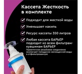 Эксклюзивный дизайн кушина разработан студией Артемия Лебедева, кувшин для большой семьи, объем кувшина 4 литра, объем воронки 1,4 литра, удобная цельнолитая ручка, широкий эргономичный выступ на крышке, срок службы не более 5 лет, кассета в комплекте, ресурс кассеты 350 л.