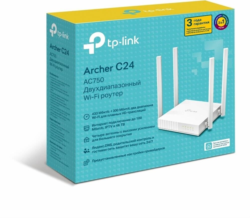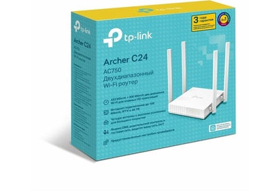 комплектация: Wi-Fi роутер Archer C24, адаптер питания, кабель Ethernet RJ45, руководство по быстрой настройке