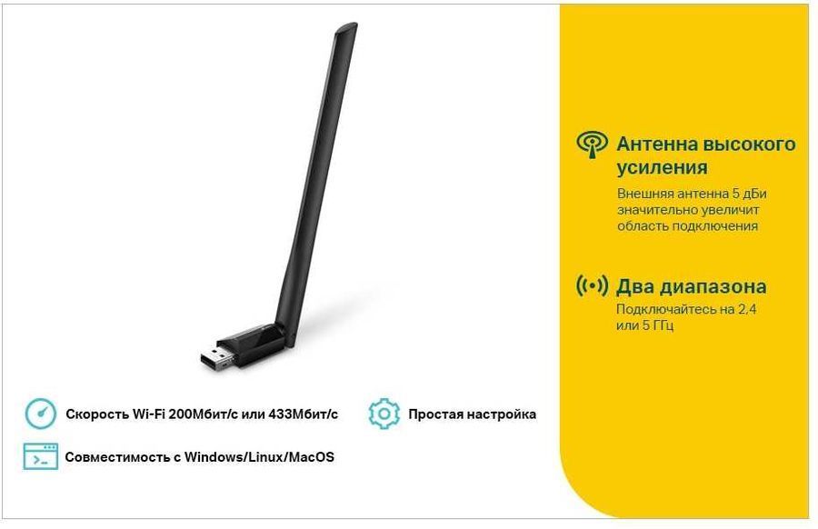 интерфейс: USB 2.0; диапазоны Wi-Fi: 2.4ГГц / 5ГГц