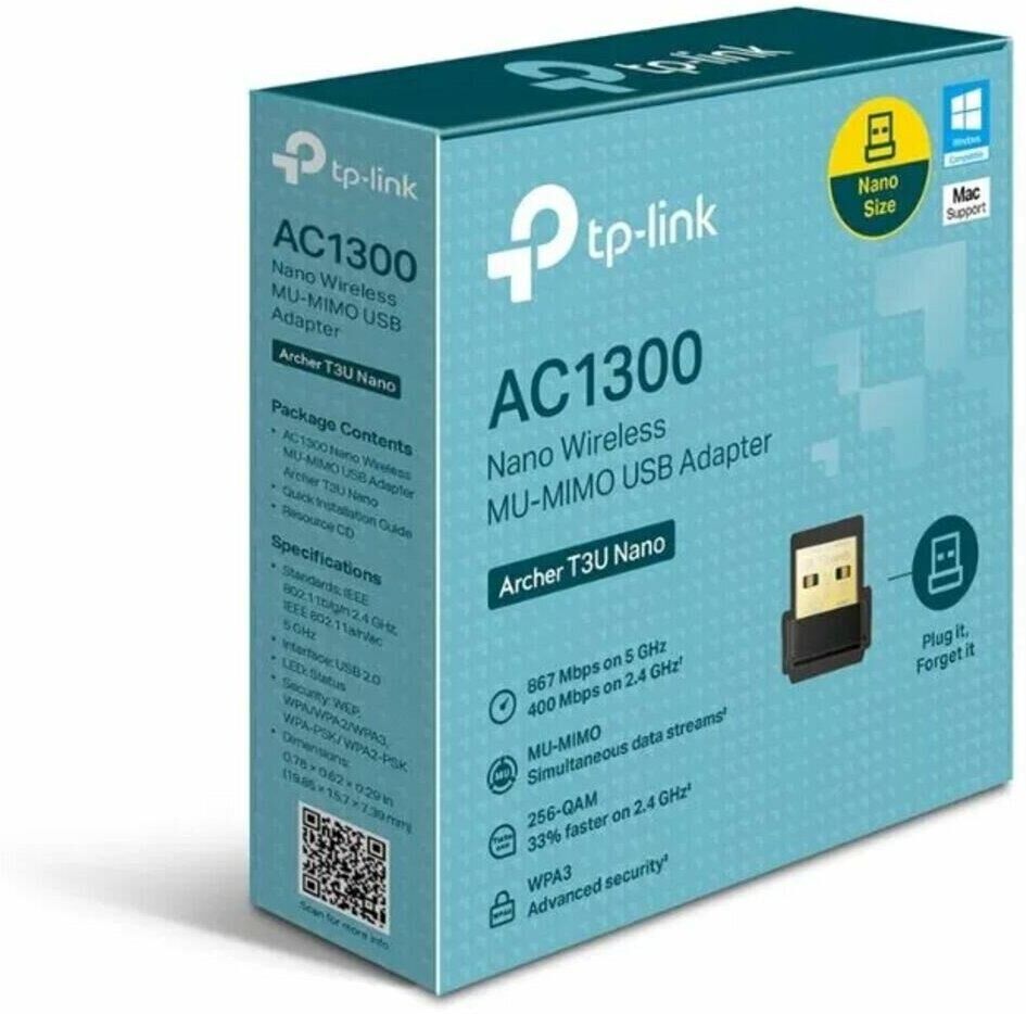 TP-LINK Archer T3U Nano AC1300 Ультракомпактный Wi-Fi USB-адаптер с поддержкой MU-MIMO