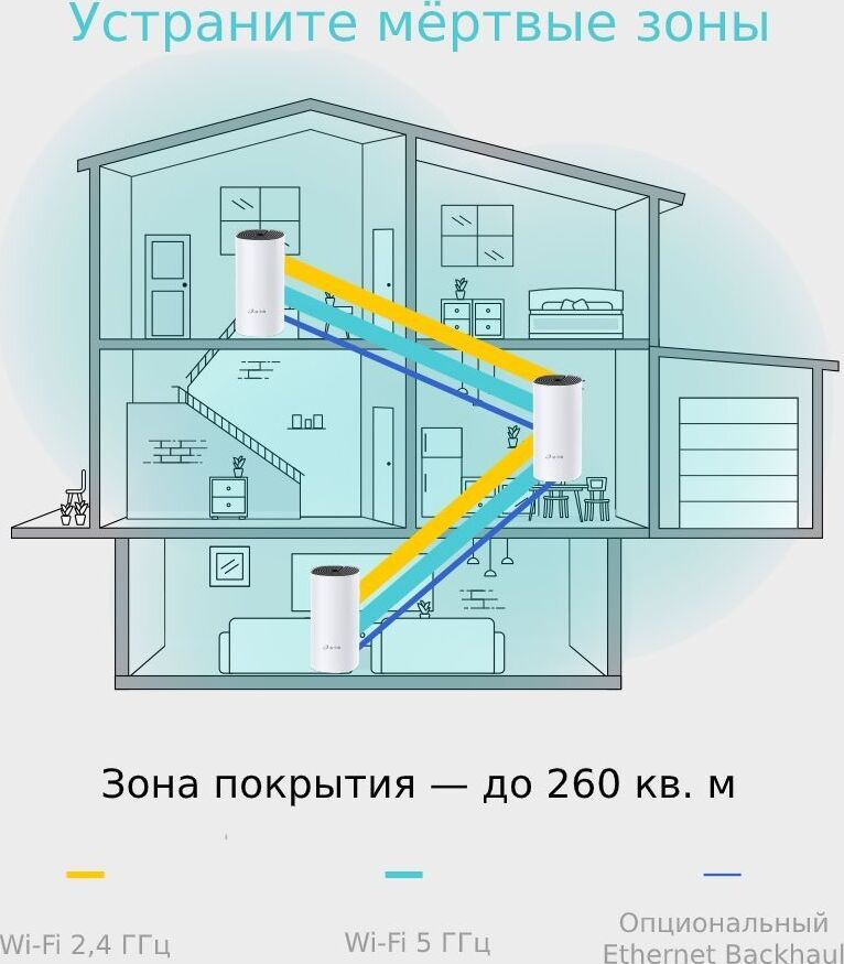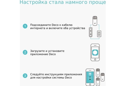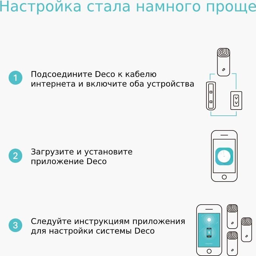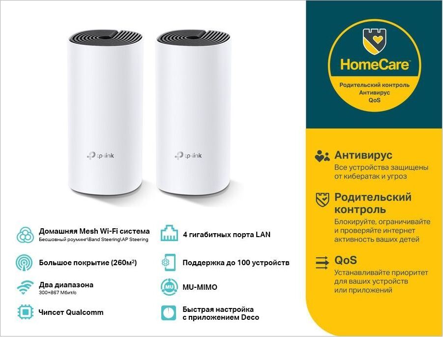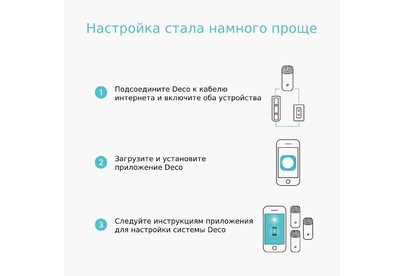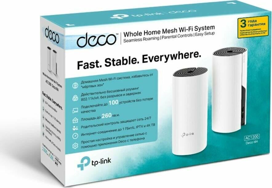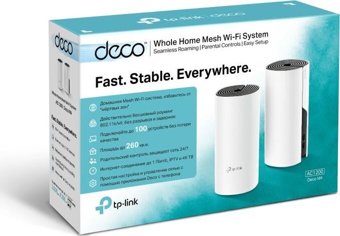 Для бесперебойного доступа к Wi-Fi во всём доме Deco использует систему модулей - избавьтесь от "мертвых зон" раз и навсегда! Благодаря современной Mesh-технологии модули Deco образуют единую домашнюю сеть с одним именем. Ваши устройства будут автоматически переключаться между разными модулями Deco на высокой скорости, куда бы вы ни пошли. Комплект Deco M4 с двумя устройствами обеспечивает покрытие до 260 кв.м. Если этого недостаточно – просто добавьте в сеть больше модулей Deco для увеличения покрытия (также возможен комплект из трёх модулей). Deco M4 обеспечивает быстрое и стабильное соединение со скоростью до 1167 Мбит/с и работает с основными интернет-провайдерами и модемами.