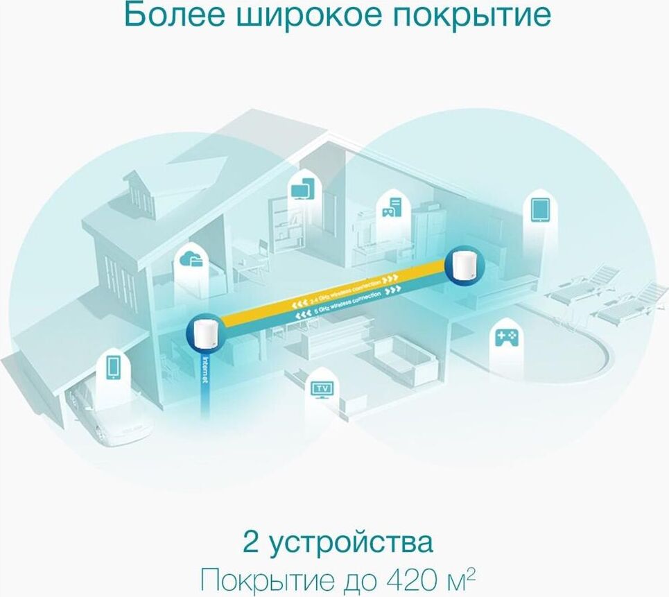 Домашняя Mesh WiFi система. Двухдиапазонный Wi-Fi AX3000 с совокупной скоростью до 3 Гбит-с. 4 потока 2402 Мбит-с (22-HE160) + 574 Мбит-с (22). 3 гигабитных порта. СтандартыWi-Fi 6IEEE 802.11ax-ac-n-a 5 ГГцIEEE 802.11ax-n-b-g 2,4 ГГцСкорость Wi-Fi AX30005 ГГц: до 2402 Мбит-с (802.11ax, HE160)2,4 ГГц: до 574 Мбит-с (802.11ax)Покрытие Wi-FiДля четырёхкомнатных квартирТехнология TP-Link MeshБлагодаря этой технологии устройства Deco будут работать вместе, обеспечивая бесшовное покрытиеMesh под управлением