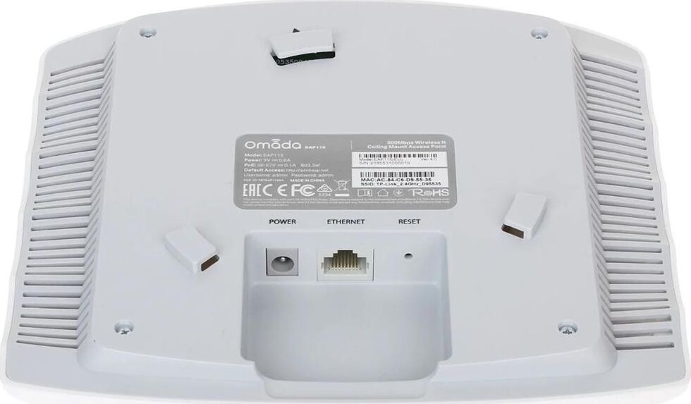 Точка доступа Стандарт Wi-Fi: WiFi 4 (802.11n) Диапазоны Wi-Fi: 2.4 ГГц Установка: Настенная, Потолочная