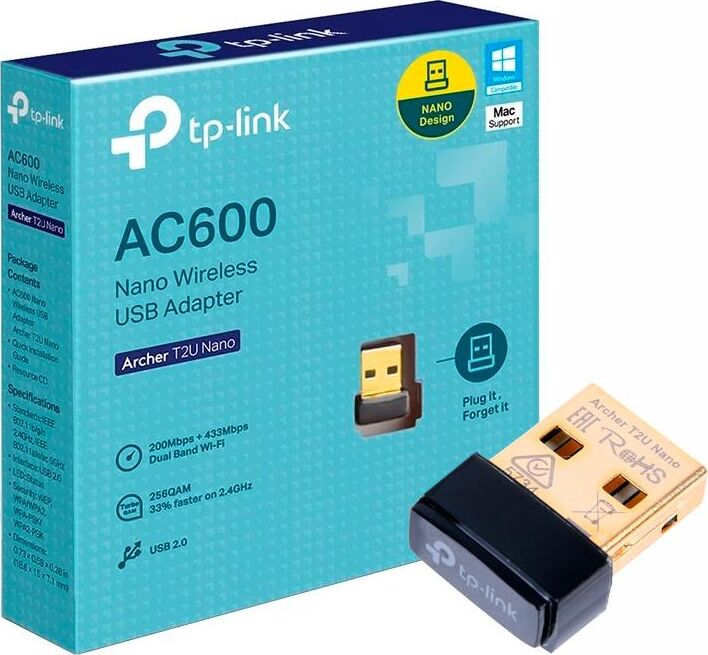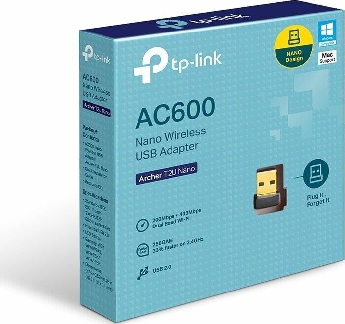 TP-LINK Сетевой адаптер Wi-Fi + Bluetooth Archer T2UB Nano AC600 USB 2.0 (ант.внутр.) 1ант
