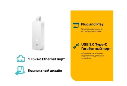 Сетевой адаптер USB Type C/Gigabit Ethernet TP-LINK UE300C Отличное решение для подключения ноутбуков, планшетов и других устройств с разъёмом USB Type-C к проводной сети. Высокоскоростное решение USB 3.0/Gigabit Ethernet обеспечивает передачу данных со скоростью до 1 Гбит/с. Поддержка Plug and Play для Windows 10, Mac OS X (10.9 и новее), Chrome OS и Linux OS. Складной портативный дизайн идеально подходит для ноутбуков типа Ultrabook Интернет-подключение по кабелю для устройств USB-C Создайте мгновенный скоростной доступ к проводной сети для ноутбука, планшета, компьютера и других устройств с разъёмом USB Type-C. Гигабитное подключение UE300C оборудован портами USB 3.0 и Gigabit Ethernet, а также поддерживает скорость передачи данных до 1 Гбит/с, благодаря чему он идеально справляется с передачей больших файлов, стримами, онлайн-играми и не только. Складной портативный корпус Вес: 20 г Размеры: 71 ? 26 ? 16,2 мм Характеристики Тип: Сетевой адаптер Интерфейс: USB Type C Скорость: 10/10