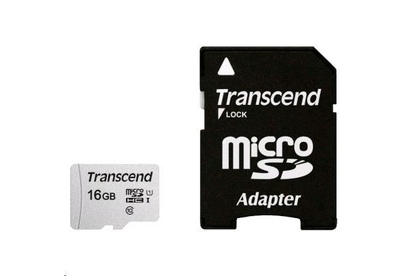 TRANSCEND 16 ГБ, 95 МБ/с, Class 10, TS16GUSD300S-A, переходник SD