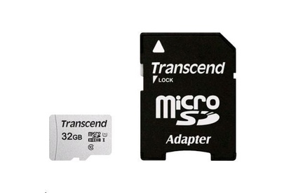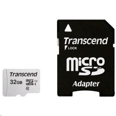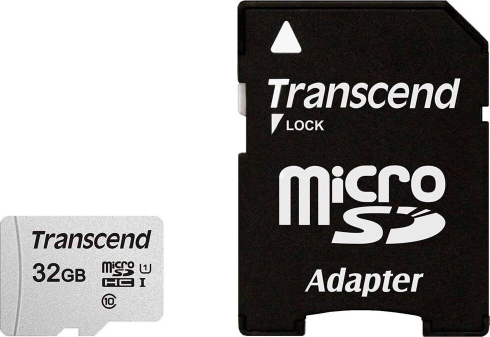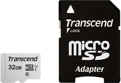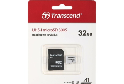 TRANSCEND 32 ГБ, 95 МБ/с, Class 10, TS32GUSD300S-A, переходник SD