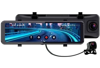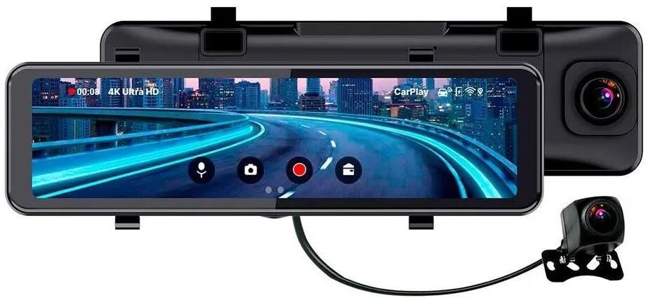 TRENDVISION Видеорегистратор CarPlay Mirror черный 2Mpix 2160x3840 2160p 150гр. MSTAR 8826