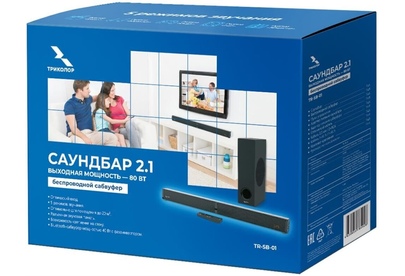 Модель TR-SB-01 Стандарт 2.1 Суммарная выходная мощность 80 Вт Диапазон частот 120 Гц - 20 КГц Режимы прослушивания Кино, Музыка, Новости, Бас, Игра Сабвуфер Выходная мощность сабвуфера 40 Вт Особенности Поддержка Bluetooth есть Поддержка форматов файлов MP3/WAV Особенности Саундбар с беспроводным сабвуфером для улучшения аудиохарактеристик телевизора, а также воспроизведения звука от различных источников: проекторы, смартфоны, медиаплееры. Подключение к источнику звука происходит с помощью Bluetooth, проводного оптического или линейного соединения. Интерфейсы Линейный стереовход 1 Оптический цифровой вход 1 Разъем USB есть Физические характеристики Цвет черный Размеры (Ш х В х Г) 940 х 58 х 62 мм Размеры сабвуфера (Ш х В х Г) 120 х 398 х 221 мм Упаковка Габариты упаковки (ед) ДхШхВ 0.51x0.18x0.37 м Вес упаковки (ед) 5.95 кг