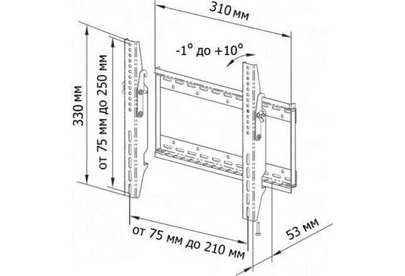 Кронштейн LPS 30-50 предназначен для крепления на стену LCD, LED, ЖК телевизора с диагональю экрана 17" -32" (43,2 см – 81,3 см) Тип: с наклоном ugolот -1° до 10°. Диагональ: 17" -32" (43,2 см – 81,3 см). Посадочные разм.: от 75 до 210мм (Г), от 75 до 250мм (В) Нагрузка: до 75 кг.