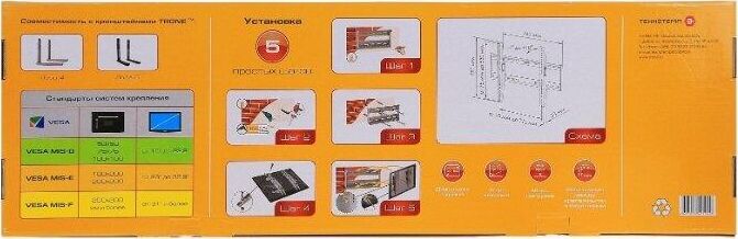 Для LCD 37-60", max. нагрузка до 75 кг., универсальное, наклонное, -1* - +10*, ширина крепежной пластины к стене - 765 мм. Цвет черный.