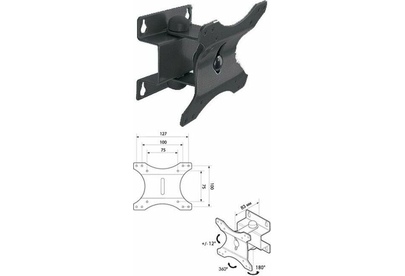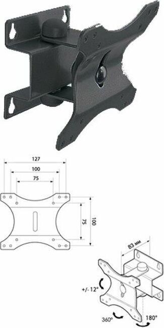 Для ЖК монитора от 15” до 23” габаритные размеры (Ш*Г*В) 265*28*123 мм VESA: 75х75, 100x100, 127х100. Нагрузка до 20 кг. Материал: сталь Цвет: черный.
