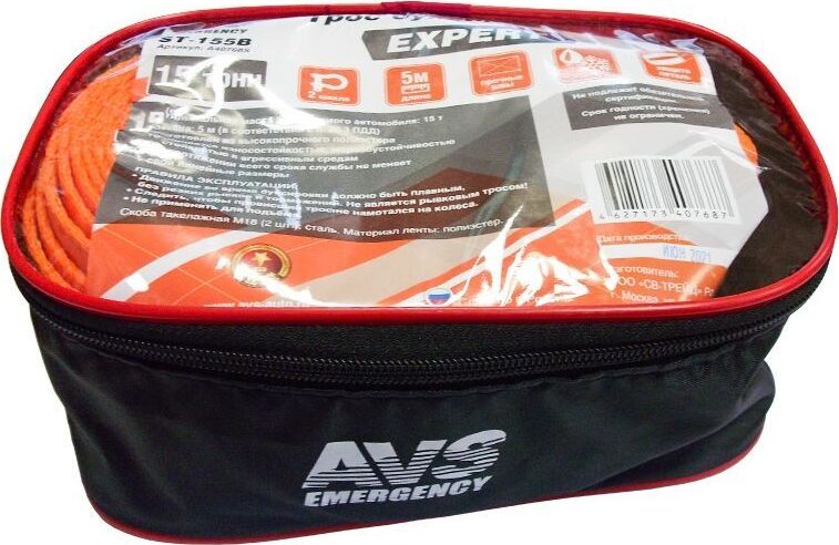 Трос буксировочный AVS EXPERT ST-155B (усиленный,цвет-оранжевый) 15т 5м.шаклы