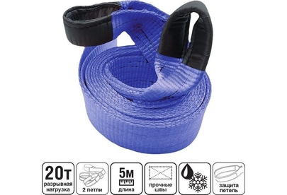 Трос буксировочный с предназначен для буксировки автомобилей и других транспортных средств. Максимальная масса буксируемого автомобиля: 20 т Длина: 5 м (в соответствии с п. 20.3 ПДД) Изготовлен из высокопрочного полиэстера Отличается износостойкостью, морозоустойчивостью и стойкостью к агрессивным средам На протяжении всего срока службы не меняет свои линейные размеры Движение во время буксировки должно быть плавным, без резких рывков и торможений. Не является рывковым тросом! Следить, чтобы провисший трос не намотался на колеса. Не применять для подъёма. Максимальная масса авто: 20 т Комплектация: Трос буксировочный Длина: 5 м Ширина ленты: 90 мм Состав: Полиэстер.