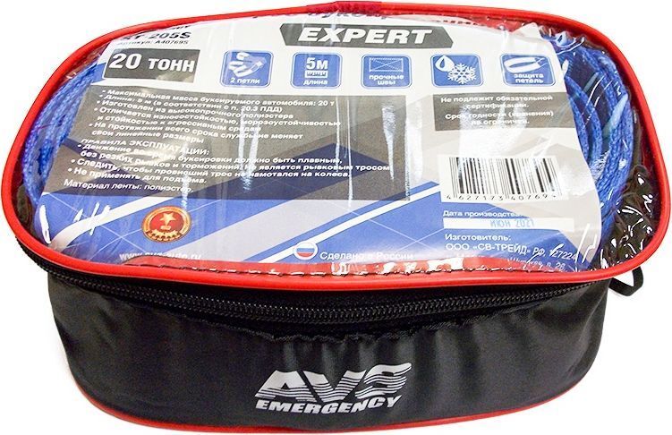 Трос буксировочный AVS EXPERT ST-205S 20т (усиленный,цвет-синий) 5м.петли