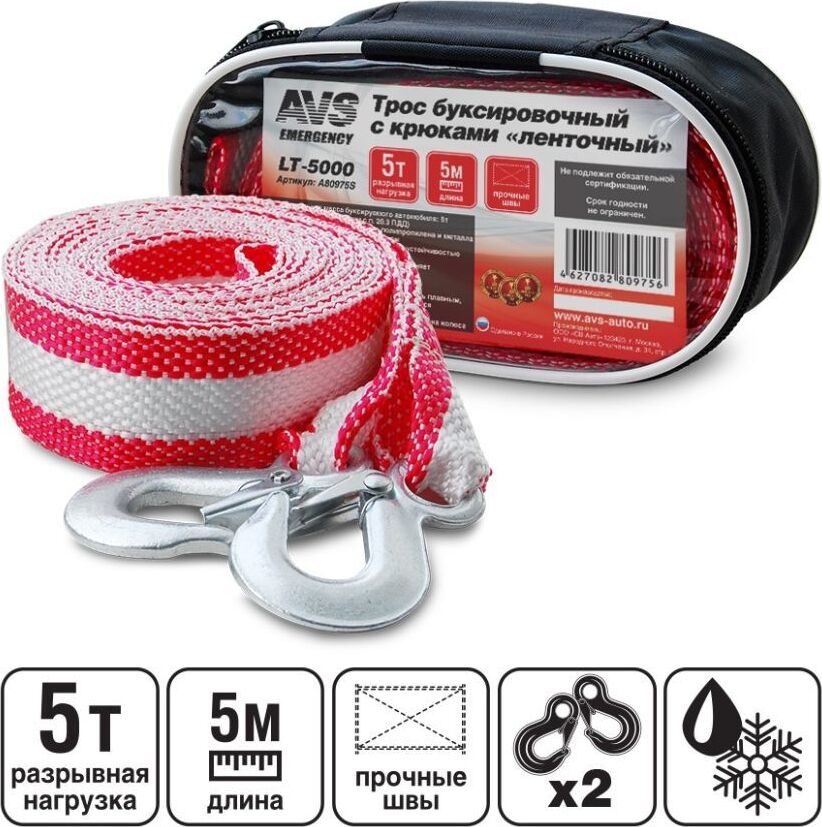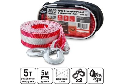 Трос буксировочный AVS LT-5000 с крюками 5т 5м, в сумке