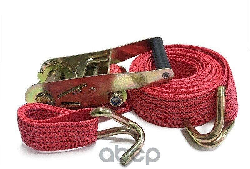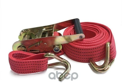 Выдерживают нагрузку на прямое стяжное усилие – 2 тонны и стяжное усилие при обхвате – 4 тонны. Характеристики • Храповый стяжной механизм из стали с ручкой типа «Стандарт» (ручка имеет пластиковую ребристую вставку в районе удерживания в ладони для комфортного использования в любых, в том числе, зимних условиях). • Высокопрочная лента из полипропилена 50 мм. Имеет прочные швы. Отличается морозостойкостью и устойчивостью к агрессивным средам. Длина ленты 8 метров. • J – образные стальные крюки.